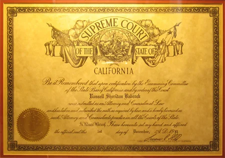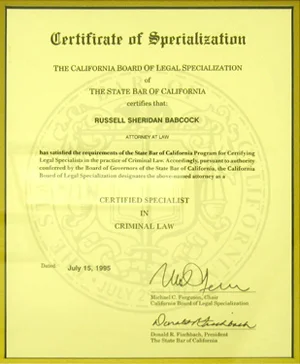 In 1995 Russell became one of the few state certified criminal specialists in San Diego County. In 1998 he won the prestigious award for “Criminal Appellate Attorney of the Year” given by the San Diego Criminal Defense Bar Association. In 2011 Russell Babcock was named one of the best five criminal defense attorneys in San Diego. Russell has been named several years as a “SuperLawyer,” including SuperLawyer 2015. He is an Avvo 10.0 rated attorney.